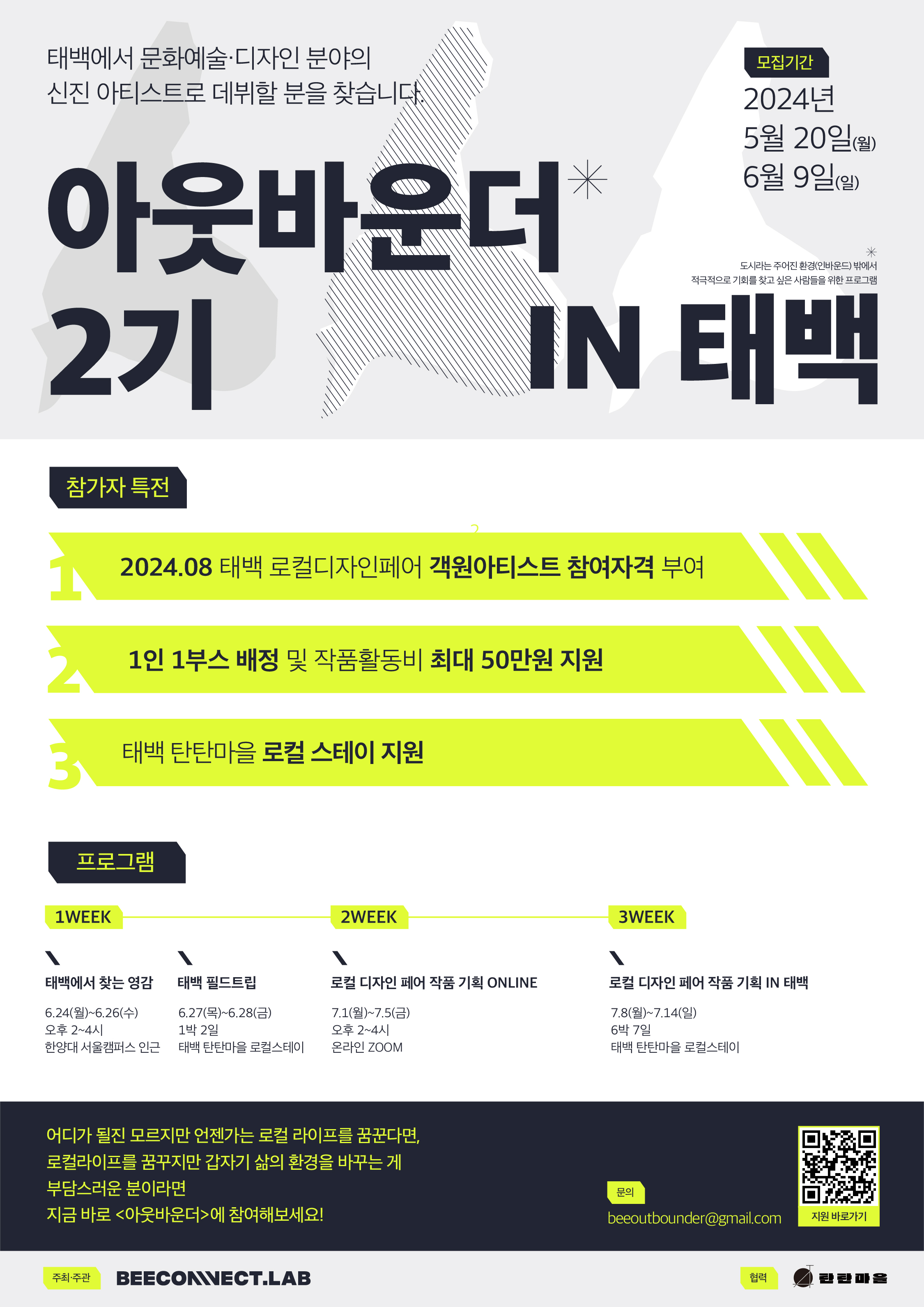 - 8월 태백 로컬디자인페어에 객원 아티스트로 참여 자격 부여
